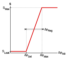 ΔpSet is the value specified in the Valve pressure setting block parameter.