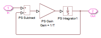 and is also built of the Physical Signals blocks: PS Subtract, PS Gain, and PS Integrator. The transfer function of the lag is