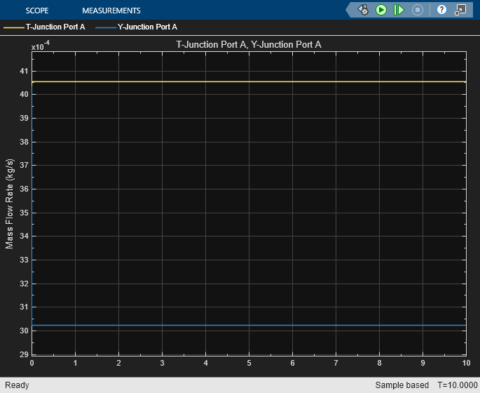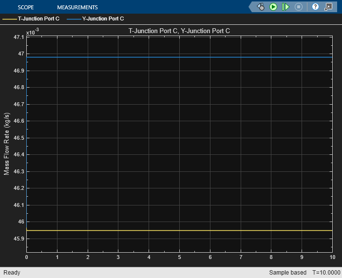 parameters for converging and diverging flow and mass flow rate at each port. You