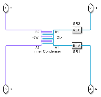 The blend door model contains two restrictions operating in the opposite manner to let cabin air either pass through the inner condenser for heating in heat pump mode or bypass the inner condenser in cold loop mode.
