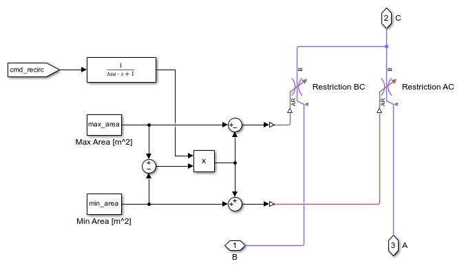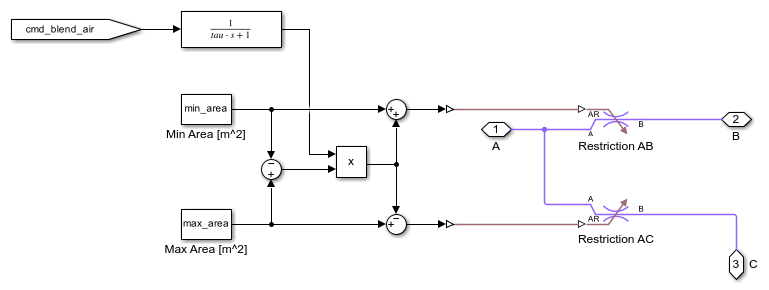 The recirculation flap model contains two restrictions operating in the opposite manner to send either environment air or cabin air to the blower.