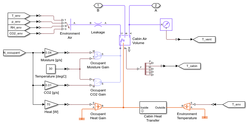 The vehicle cabin is modeled as a large volume of moist air. Each occupant in the vehicle is a source of heat, moisture, and CO2.