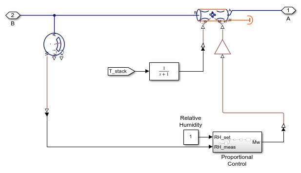 The MEA block is implemented in the Simscape code FuelCell.ssc.