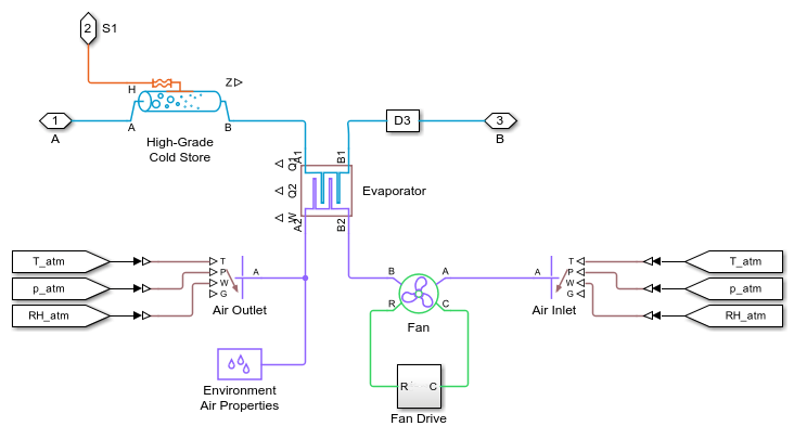 This example models a grid-scale energy storage system based on cryogenic liquid air. When there is excess power, the system liquefies ambient air based on a variation of the Claude cycle. The cold liquid air is stored in a low-pressure insulated tank until needed. When there is high power demand, the system expands the stored liquid air to produce power based on the Rankine cycle.