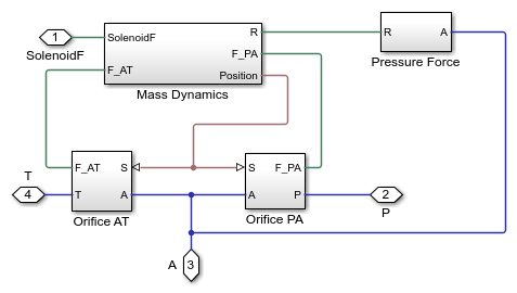 This example shows how to model, parameterize, and test a pressure control solenoid valve. This example also generates a plot of the relationship between applied solenoid force and the resulting actuator port pressure.