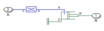 This subsystem shows how the orifice between ports A and P is modeled.