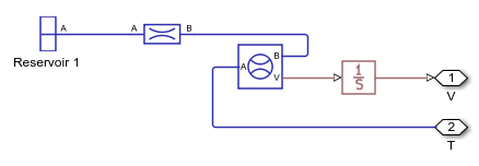 This example shows a water supply system consisting of three pumping stations located at 45, 25, and 30 m with respect to the reference plane, respectively. All three stations are expected to pump water in a tank located at 61 m. All tanks are large enough to assume that the fluid level remains nearly constant, allowing them to be modeled with the Reservoir (IL) block. The initial volume of water in each tank is set to 100