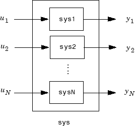 For systems with transfer functions H1(s), . . . , HN(s), the resulting system sys has the block-diagonal transfer function