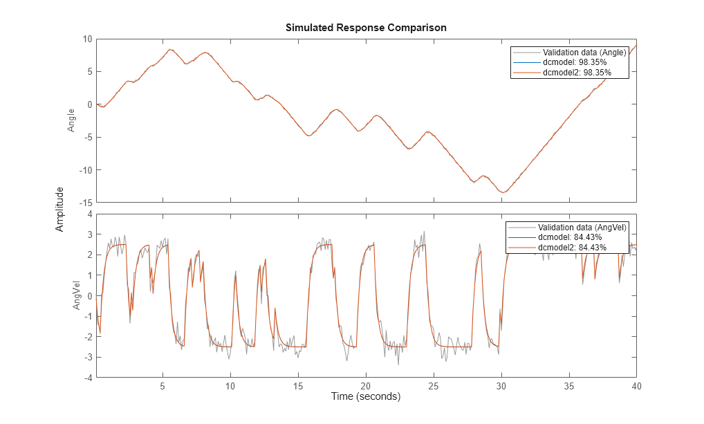 With this model we can now proceed to test various aspects as before. The syntax of all the commands is identical to the previous case. For example, we can compare the idgrey model with the other state-space model: