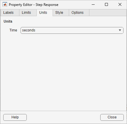 In general, you can change the following properties of response plots. Only the Labels and Limits tabs are available when using the Property Editor with Simulink® Design Optimization™ software.