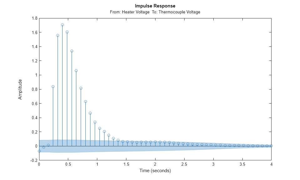 clf mi = impulseest(ze); % non-parametric (FIR) model showConfidence(impulseplot(mi),3); %impulse response with 3 standard %deviations confidence region