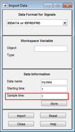 The sample time is the time between successive data samples in your experiment and must be the numerical time interval at which your data is sampled in any units. For example, enter 0.5 if your data was sampled every 0.5 s, and enter 1 if your data was sampled every 1 s.