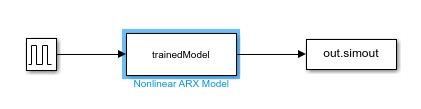 To substitute the surrogate system into the Simulink model, use a Nonlinear ARX Model block. As an example, open the GPsurrogateModel Simulink model.
