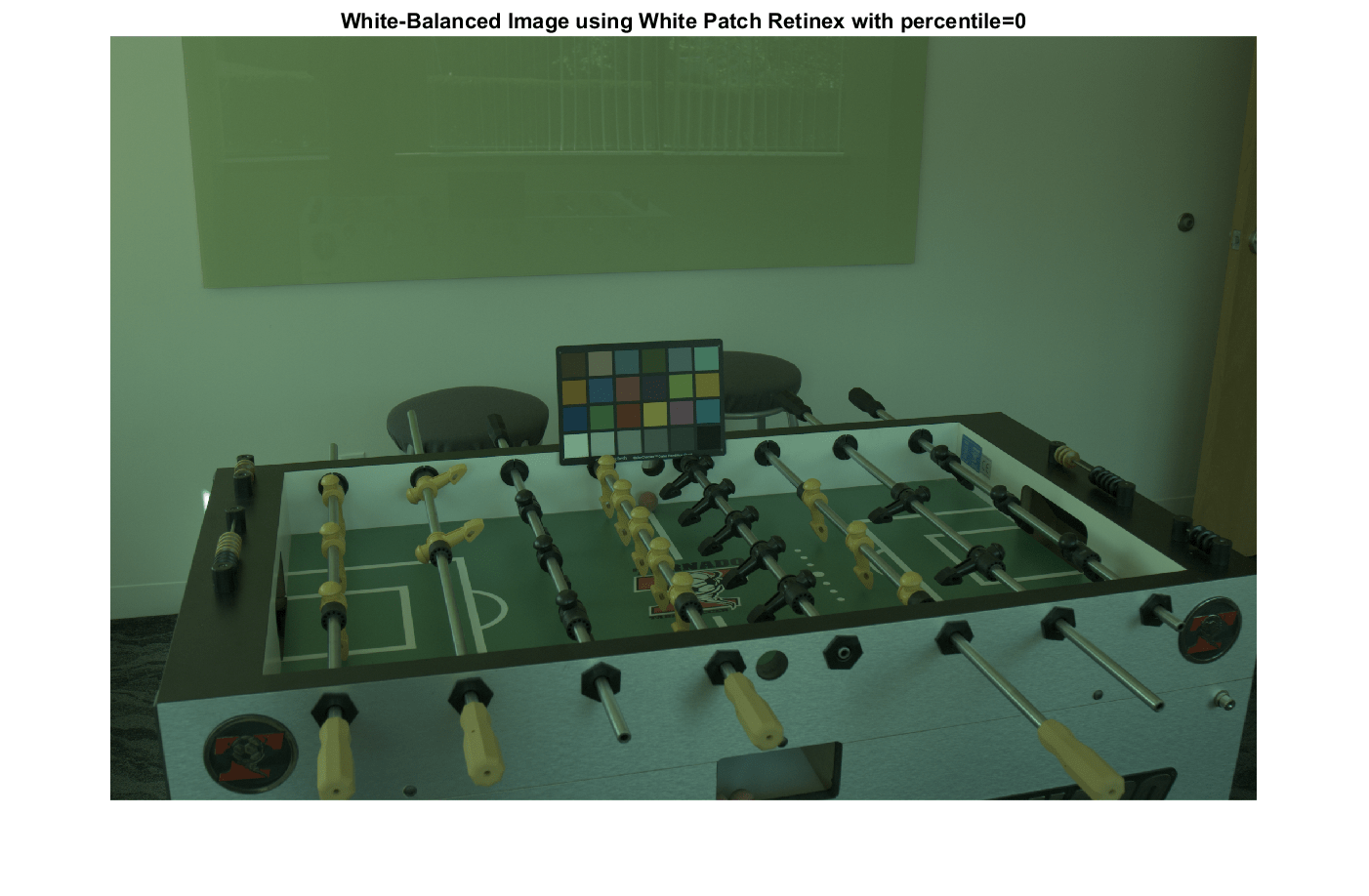 A = imread("foosballraw.tiff");Interpolate to Recover Missing Color Information