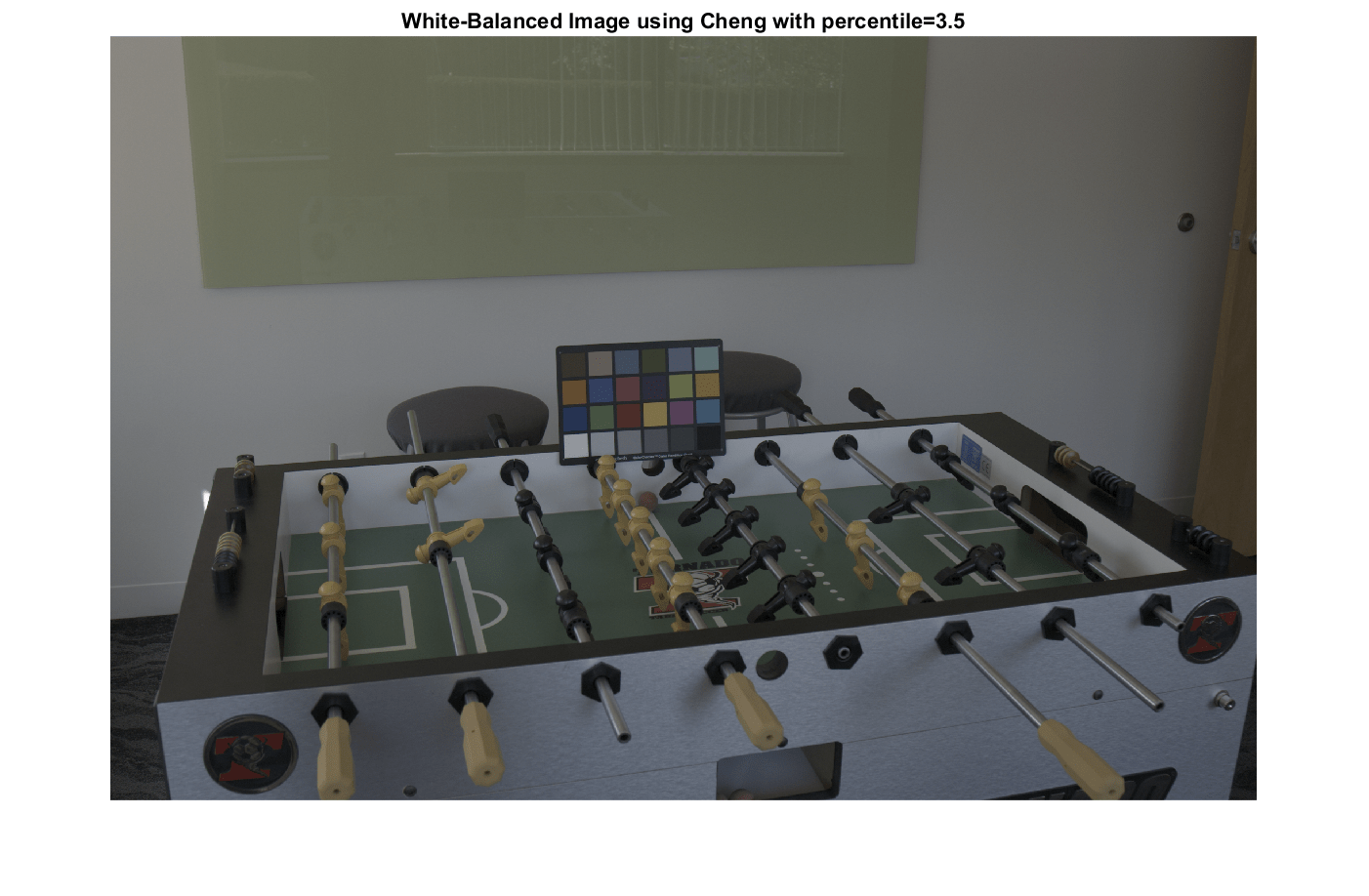 disp(["Angular error for Gray World with percentiles=[1 1]: " num2str(err_gw2)])Angular error for Gray World with percentiles=[1 1]: 5.1094