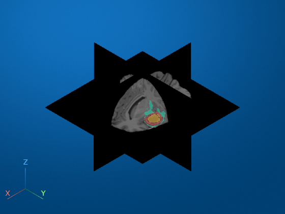 viewer3 = viewer3d; Volume3 = volshow(vol,Parent=viewer3, ... RenderingStyle="SlicePlanes", ... OverlayData=label, ... OverlayAlpha=0.5, .... OverlayColormap=turbo, ... OverlayDisplayRangeMode="data-range");
