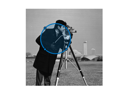 drawcirclefunction. Use this function when you want to create the ROI and set the appearance in a single command. You can specify the size and position of the ROI interactively by drawing the ROI over an image using the mouse, or programmatically by using name-value arguments.Use the