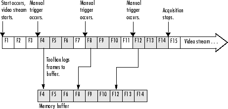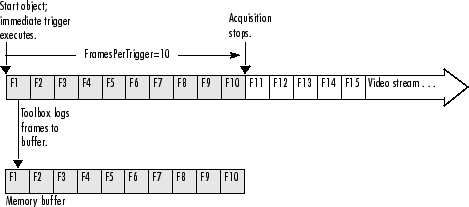 of a manual trigger. In the figure, the FramesPerTrigger property