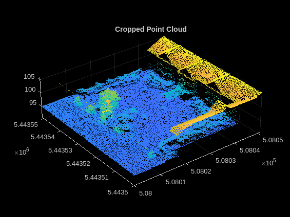 Each point cloud in the DALES dataset covers an area of 500-by-500 meters, which is much larger than the typical area covered by terrestrial lidar point clouds. For efficient memory processing, divide the point cloud into small, non-overlapping blocks by using a blockedPointCloud object.