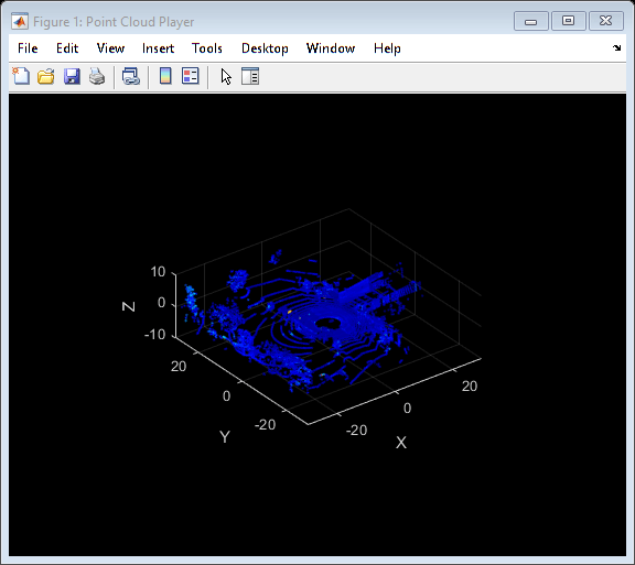 lidarViewer = pcplayer(frame.XLimits,frame.YLimits,frame.ZLimits); view(lidarViewer, frame)