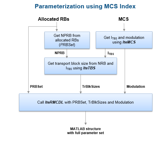 There are cases where we know the MCS or the transport block size and want to create a corresponding waveform. The following figure shows the steps involved in parameterization using MCS.
