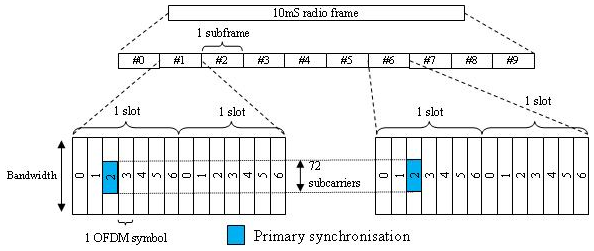 In LTE, there are two downlink synchronization signals which are used by the UE to obtain the cell identity and frame timing.