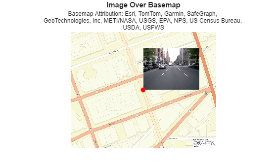 This example shows how to display a photograph taken on Berkeley Street in Boston, MA over a basemap image.