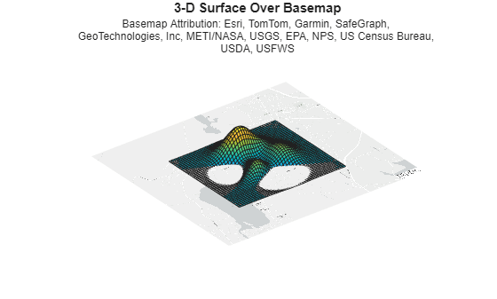 This example shows how to display a sample 3-D surface over a basemap image.