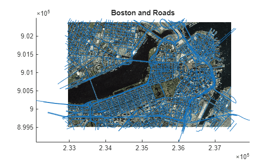 Geographic vector data that contains coordinates in a projected coordinate reference system can be stored in shapefiles. This example illustrates how to import vector data in a projected coordinate reference system from the shapefile, boston_roads.shp.