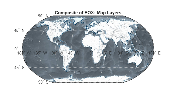 figure worldmap world geoshow(A,R) title("Composite of EOX::Map Layers")