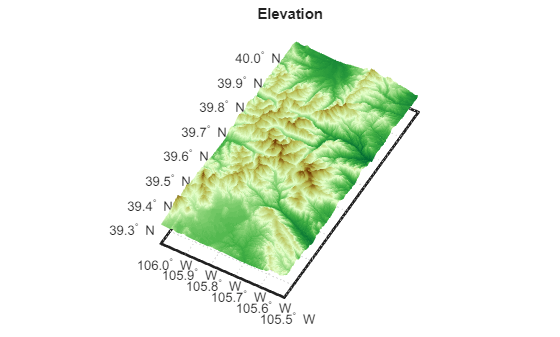 [fullZ,fullR] = readgeoraster("n39_w106_3arc_v2.dt1",OutputType="double"); latlim = [39.25 40.0]; lonlim = [-106 -105.5]; [Z,R] = geocrop(fullZ,fullR,latlim,lonlim);