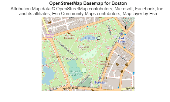 Add the OpenStreetMap® [1] basemap to the list of basemaps available for use with mapping functions. After you add the basemap, you do not need to add it again in future sessions.