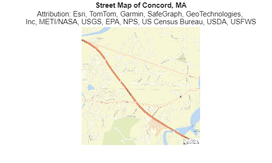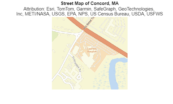 Read an image of the "streets" basemap for an area in Concord, MA. Specify the area using latitude and longitude limits.
