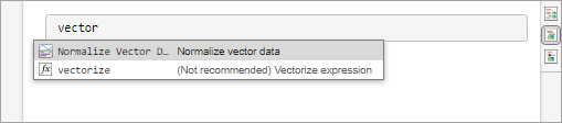 On a code line, type vector. MATLAB shows a list of suggested matches.
