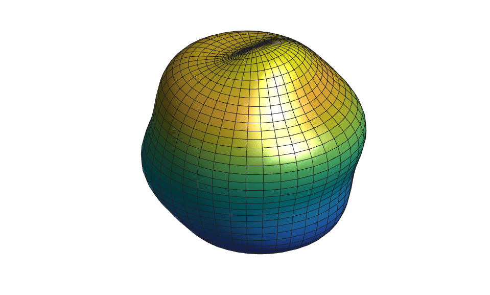 degree = 6; order = 1; amplitude = 0.5; radius = 5; Ymn = legendre(degree,cos(theta(:,1))); Ymn = Ymn(order+1,:)'; yy = Ymn; for kk = 2: size(theta,1) yy = [yy Ymn]; end yy = yy.*cos(order*phi); order = max(max(abs(yy))); rho = radius + amplitude*yy/order; r = rho.*sin(theta); x = r.*cos(phi); y = r.*sin(phi); z = rho.*cos(theta);