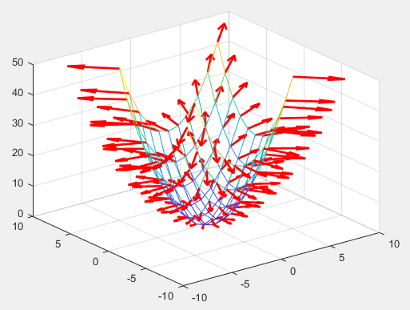 [X,Y] = meshgrid(-5:5); Z = X.^2 + Y.^2; c = MeshGradientChart('XData',X,'YData',Y,'ZData',Z);