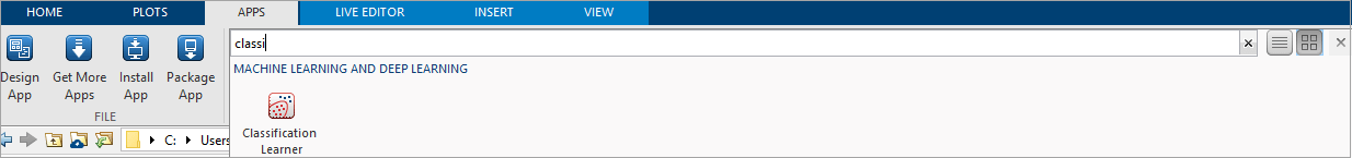 Use the Classification Learner app to select a classification model. In the Apps tab on the MATLAB toolstrip, search for the Classification Learner app.