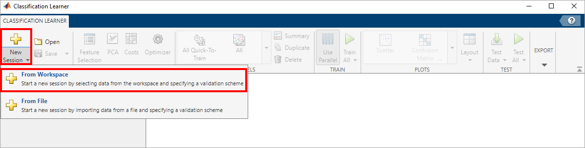 In the Data set pane, select the training variable finalTrainingData and click Start Session.