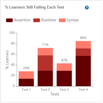 The graph reflects each learner’s most recent submission. For example, if a learner's solution passed Test 2 in a previous submission but failed in their most recent submission, the graph shows the learner as failing Test 2.
