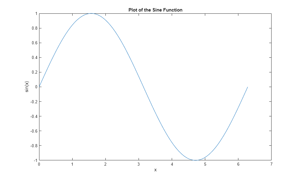 xlabel('x') ylabel('sin(x)') title('Plot of the Sine Function')