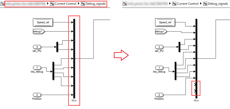 Current Control/Debug_signalssubsystem.Add two more inputs to the mux block highlighted in the following figure: