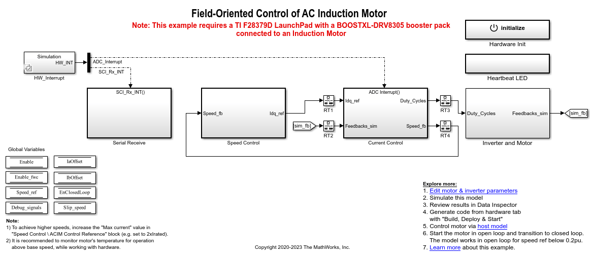 The example includes the model mcb_acim_foc_sensorless_f28379d.