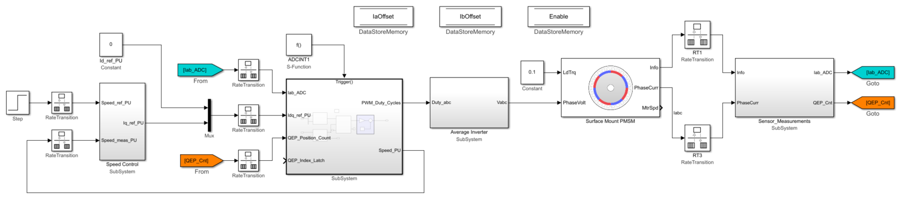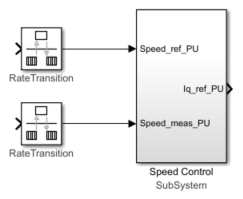 2. Create a subsystem for the speed controller and add Rate Transition blocks (from the Simulink/Signal Attributes library) to the subsystem inputs with a sample time of Ts_speed (execution time of the speed control loop).