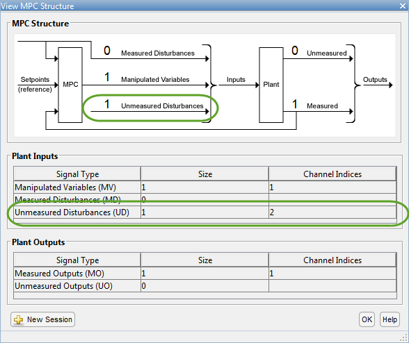 When you create an MPC controller using an identified model, the software discards any noise channels from the model by default. You can configure the noise channels as unmeasured disturbances by augmenting the identified model.