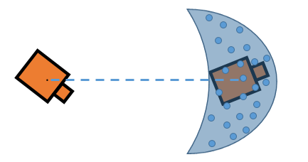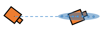 Assuming these steps, you can visualize the effect of errors in rotation and translation. Errors in the initial rotation result in your possible positions being spread out in a C-shape around the final position.