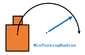 MinTurningRadiusspecifies the minimum turning radius for the robot traveling at the desired velocity. The robot may not be able to make sharp turns at high velocities. This property factors in navigating around obstacles and gives it enough space to maneuver.