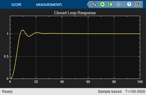 The problem is to design a feedback control loop that tracks a unit step input to the system. The closed-loop plant is entered in terms of the blocks where the plant and actuator are located in a hierarchical Subsystem block. A Scope block displays output trajectories during the design process.