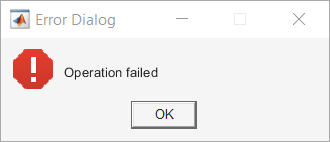 afterEach(errorFuture, @() msgbox('Operation completed'), 0);To handle futures that result in errors, use the name-value pair PassFuture when calling afterEach. The future variable is passed to the callback function instead of its outputs. Call fetchOutputs on the future variable, and process its outputs. If the future results in an error, fetchOutputs throws an error that you can catch and handle. The following code shows an error dialog box.