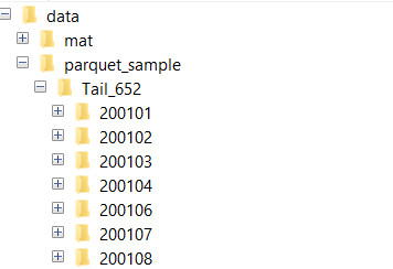 This code creates one Parquet file for each MAT file in the datastore and saves the Parquet files in the parquet_sample folder, preserving the folder structure of the original MAT files. This process writes 2.6 GB of data to disk. To confirm that you want to save the data, select "true" from the drop-down list before you run the example.
