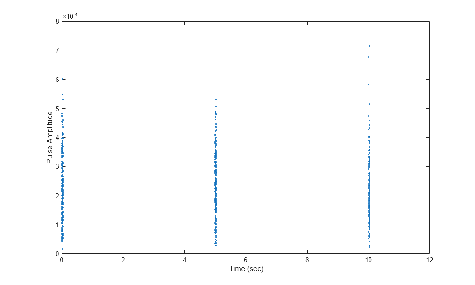 plot(tp(:),z(:),'.') xlabel('Time (sec)') ylabel('Pulse Amplitude')